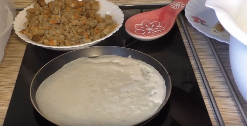3. Теперь все готово к созданию фаршированных блинчиков.