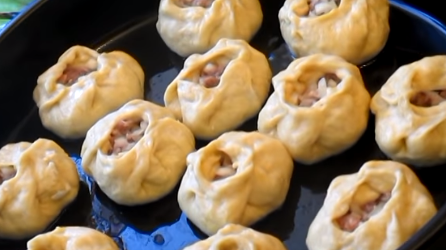 Еще очень важно, чтобы начинка была сочной, для этого, во-первых, берется одна часть жирного мяса (баранины или свинины), во-вторых, много лука, который для сочности приминается, в-третьих, можно добавить сливки или молоко.