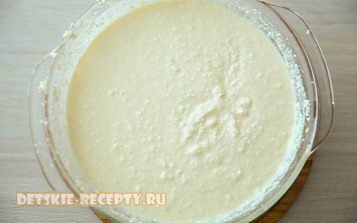 У вас получится жидкое тесто. Оно может показаться сильно жидким на первый взгляд, но доверьтесь рецепту, проверенному еще с бабушкиных времен и все будет хорошо.