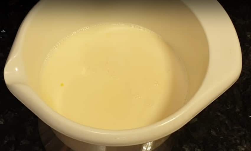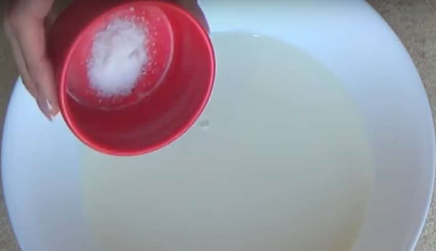 - Молоко и воду нужно соединить, растворить в них фруктозу и соль.