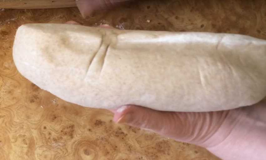 7. Заготовку выложите на бумагу для выпечки, при желании сделайте надрезы.