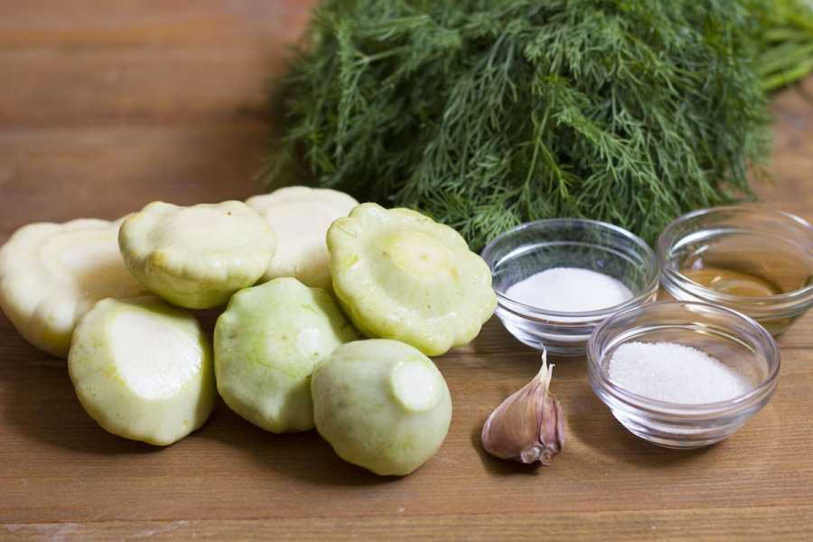 Одна из самых популярных и удачных заготовок из «тарельчатой тыквы» — патиссоны маринованные. Для их приготовления потребуются: