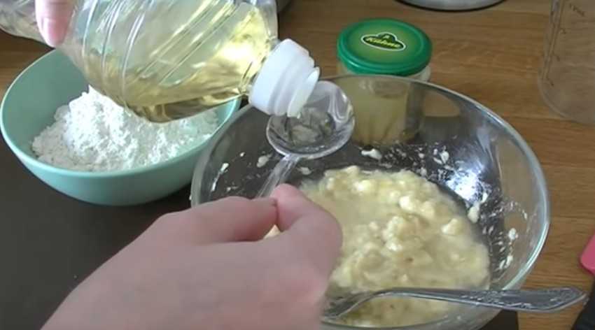 - Гасим соду уксусом и добавляем к сухим ингредиентам.