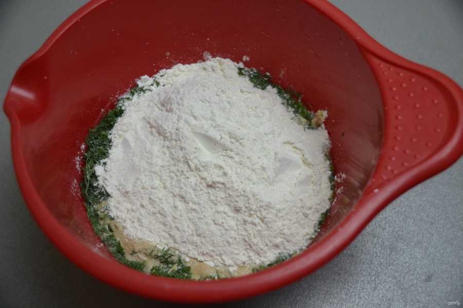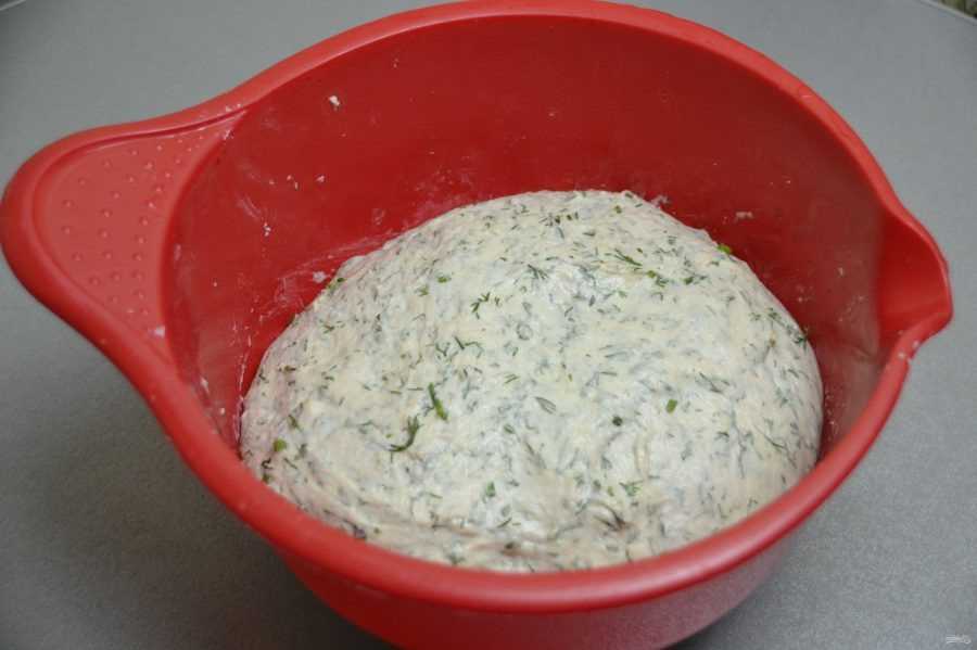 В емкость для замешивания теста добавьте измельченный укроп и тертый на терке чеснок.