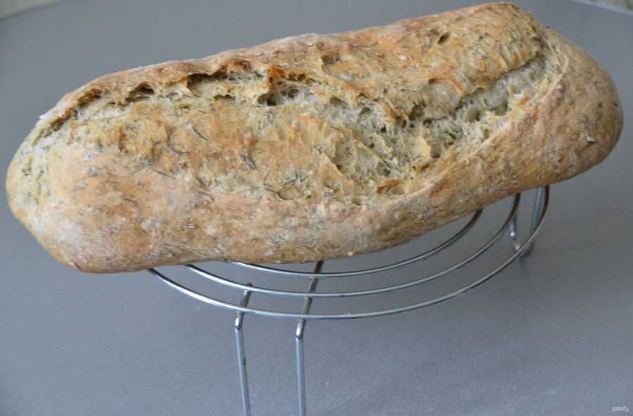 Дайте хлебу остыть на решетке до комнатной температуры, резать его пока нельзя, так как процесс выпечки еще не завершен.