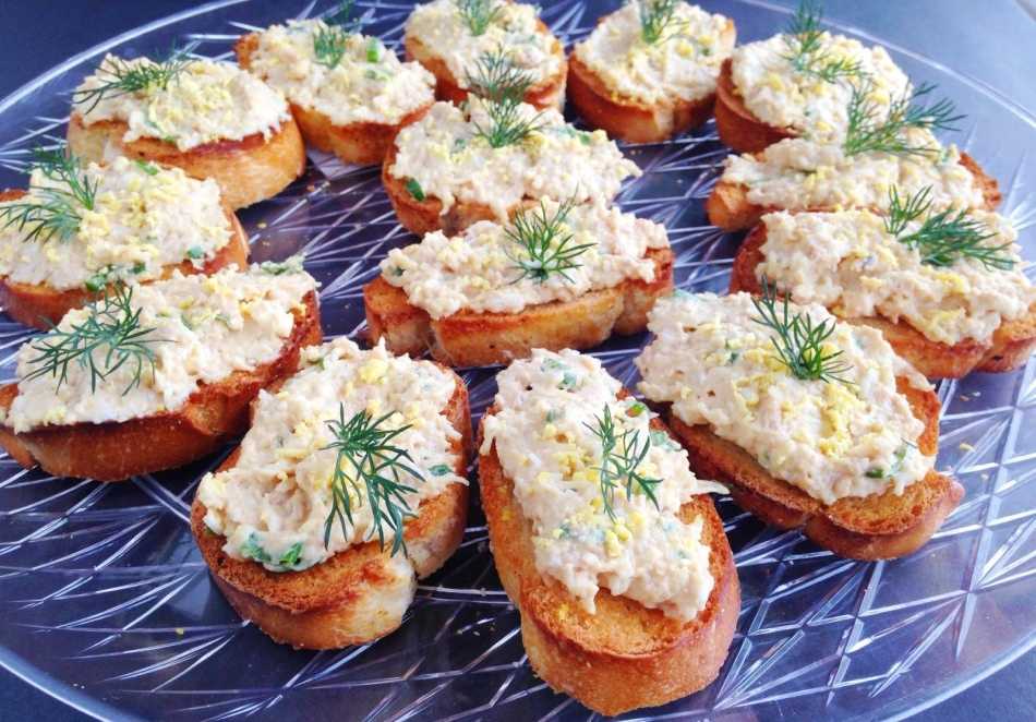 - Намазываем эту начинку на поджаренные гренки, украшаем зеленью, ломтиками помидоров или огурцов.