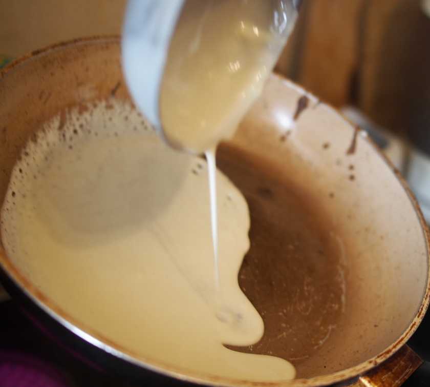 Муку добавлять не нужно – блинчики и так отлично схватятся и будут очень нежными.