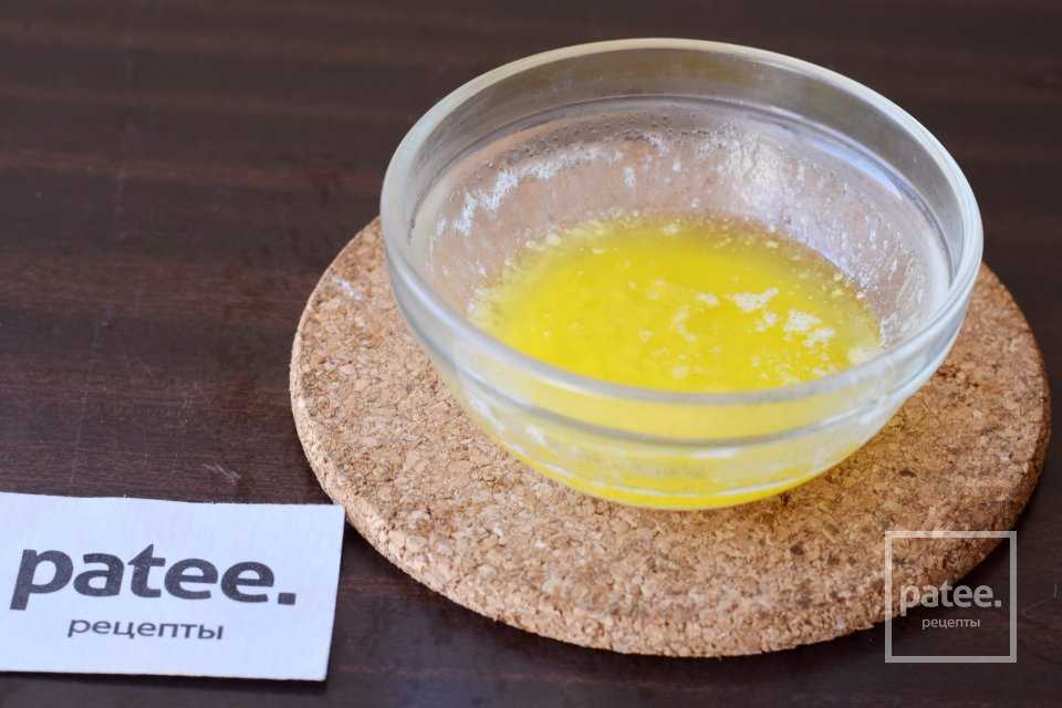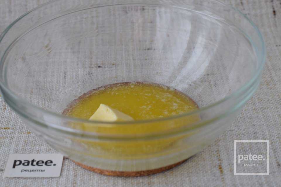 Сначала приготовим тесто. Сливочное масло растопим в микроволновой печи.