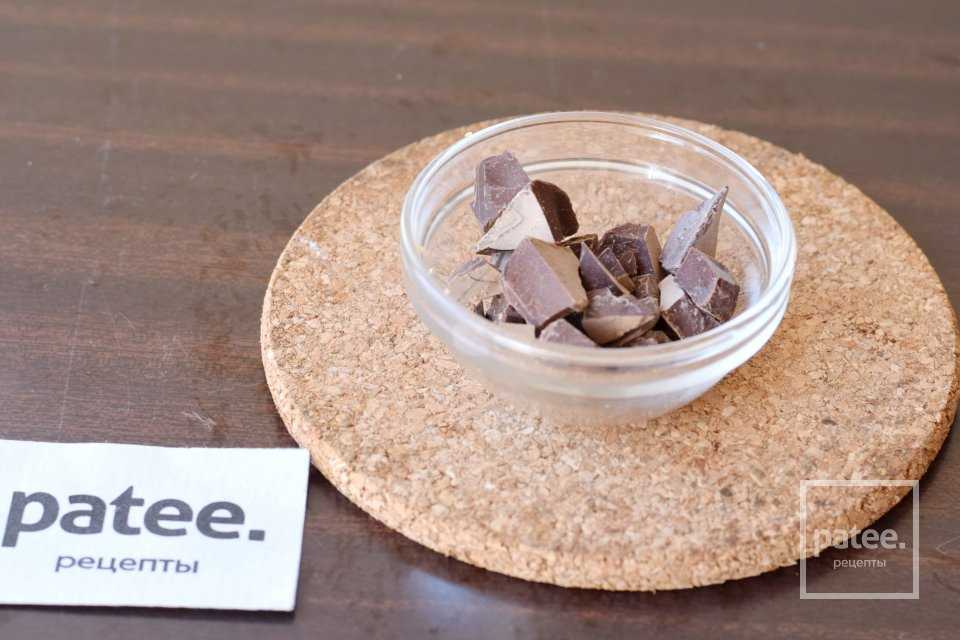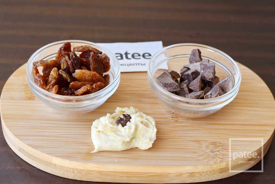 Шоколад нарежем ножом на небольшие кусочки, размером с изюм.