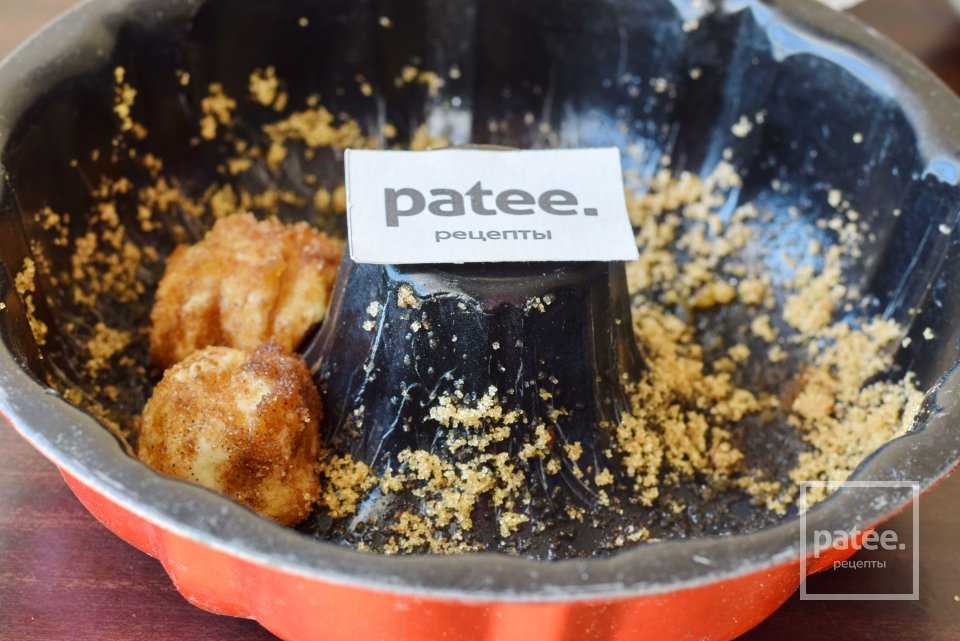Традиционо обезьяний хлеб выпекается в круглой форме, как на фото. Обмазываем форму изнутри сливочным маслом и обильно посыпаем сахаром с корицей.
