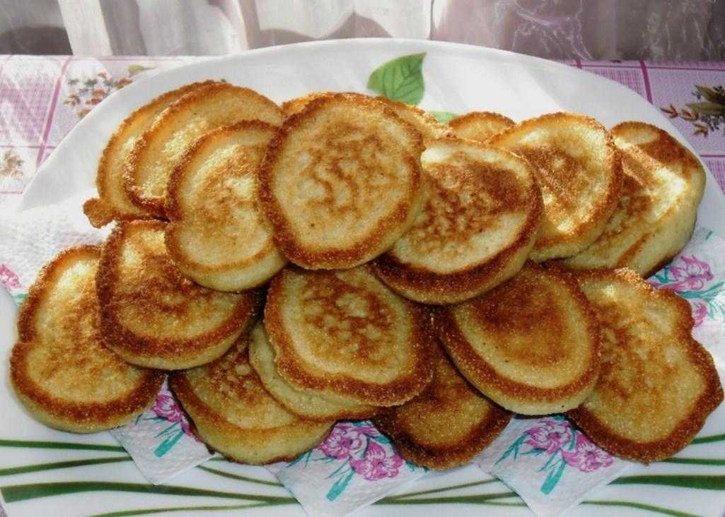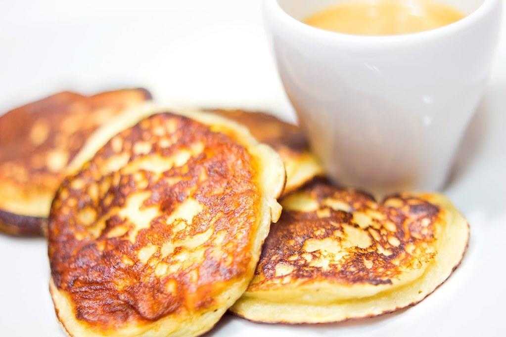 - Диетические оладушки и панкейки, как правило, делают без муки, сахара и яиц. Они получаются менее пышными, но зато более полезны. Вкус можно дополнить ягодами, медом, нарезать кусочками фрукты и посыпать сверху блюдо.