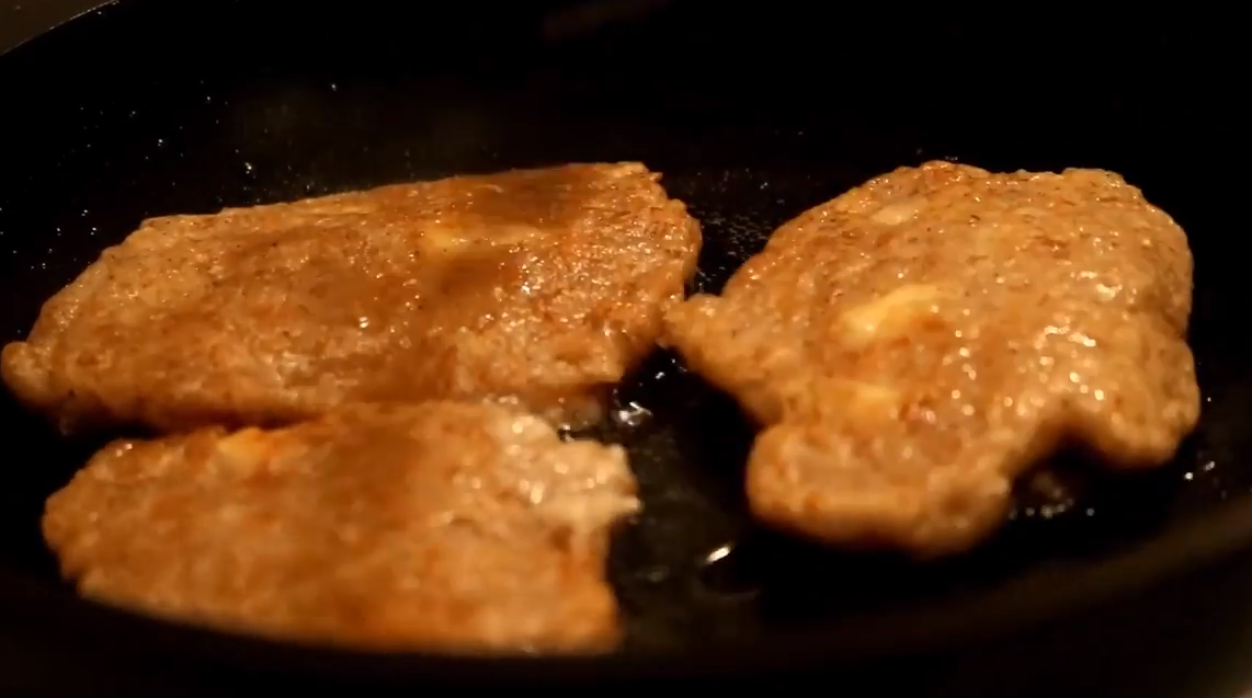 Закройте сковороду крышкой и на большом огне обжарьте сначала с одной стороны, после этого аккуратно переверните на вторую сторону. Вытирайте время от времени капли воды на внутренней стороне крышки бумажной салфеткой, чтобы они не капали в масло.