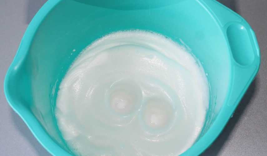 Поработайте венчиком, хорошенько взбив смесь, чтобы кристаллы сладости растворились.