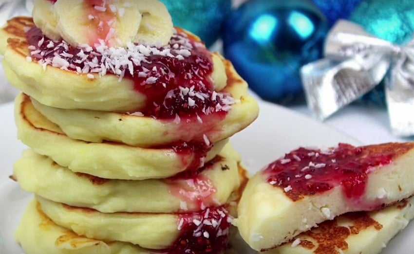 По сравнению с сырниками, эти оладьи имеют более нежную консистенцию и необычную структуру, т.к. края у них хрустящие, а серединка влажная – необычное сочетание.