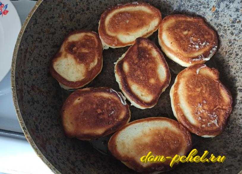 5. Из теста формируем оладьи, выкладываем их на разогретую с растительным маслом сковороду и обжариваем с обеих сторон до готовности.