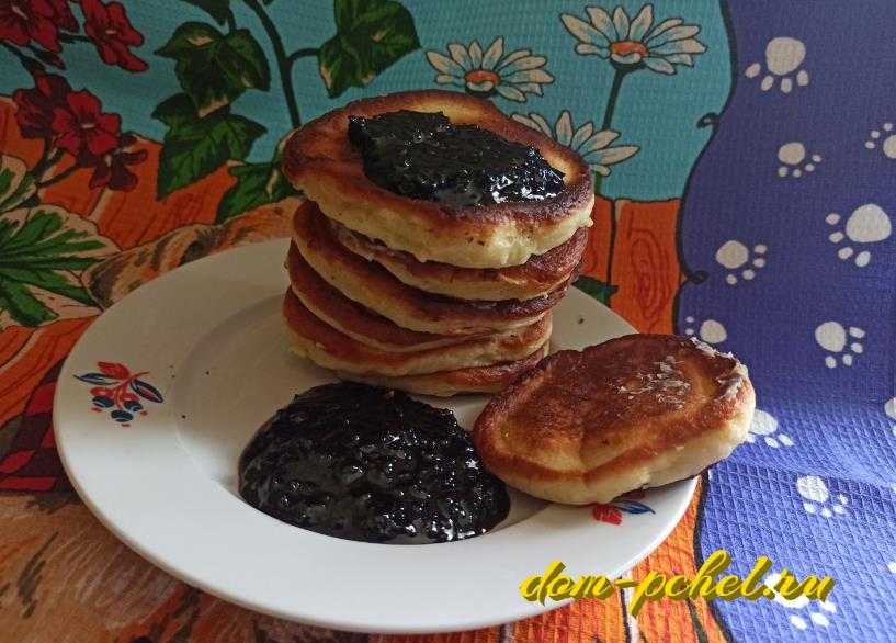 12. Готовые оладьи выложите в тарелку и подавайте, пока они остаются горячими. Очень вкусно, если полить их сметаной, медом или вареньем. Приятного аппетита!