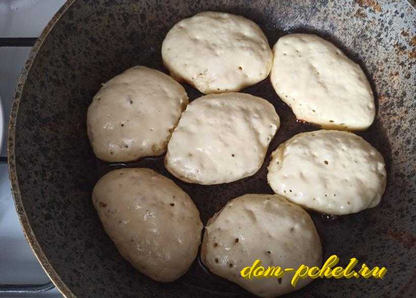 11. Затем переверните оладьи на другую сторону и снова обжаривайте до золотистой корочки, не накрывая сковородку крышкой.