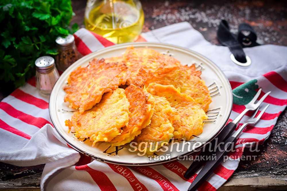 Каждые кусочек далее следует обмакнуть в подготовленный кляр и выложить на разогретую сковороду с минимумом масла. Оладьи должны румяниться на каждой стороне по 2-4 минуты, затем их можно будет выкладывать на бумажное полотенце для удаления лишней жирности и подавать к столу.