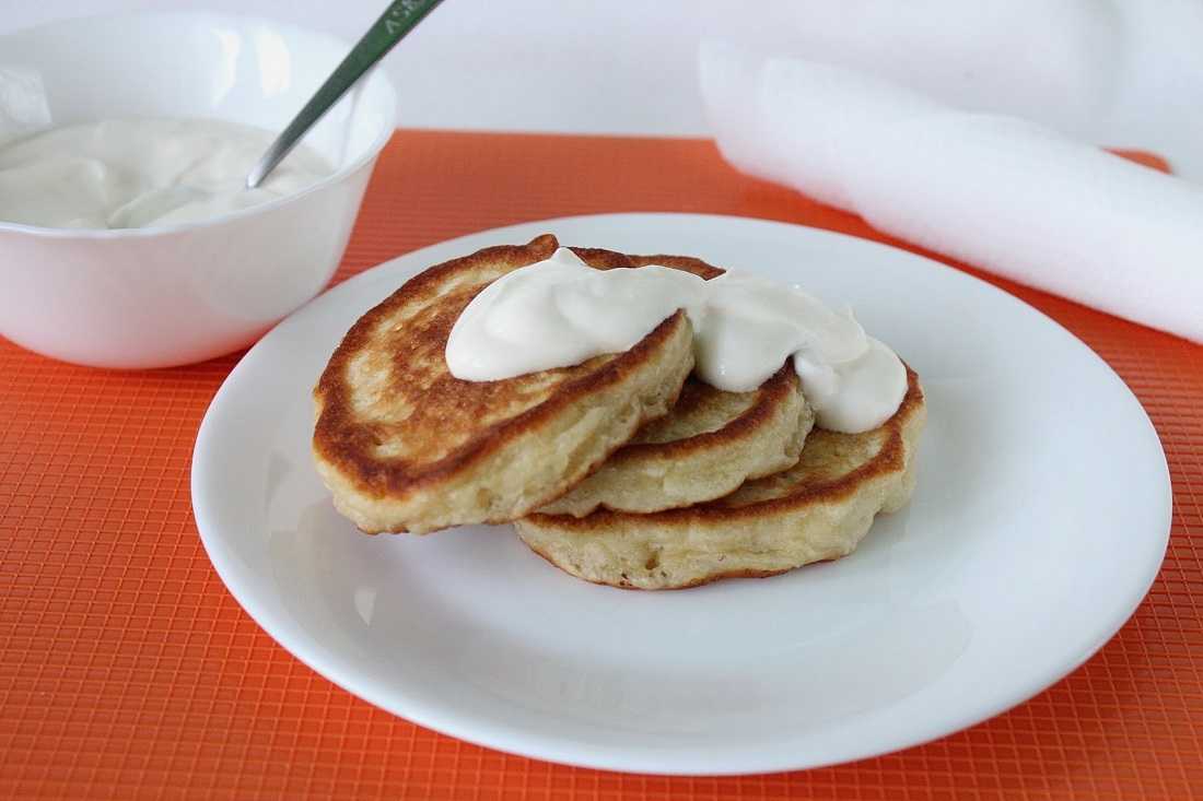 Выпечку лучше предлагать со сметаной, потому что оладьи уже содержат в себе сладкие и фруктовые добавки.