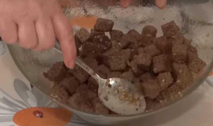 - Подождите, пока сухарики приобретут золотистый цвет.