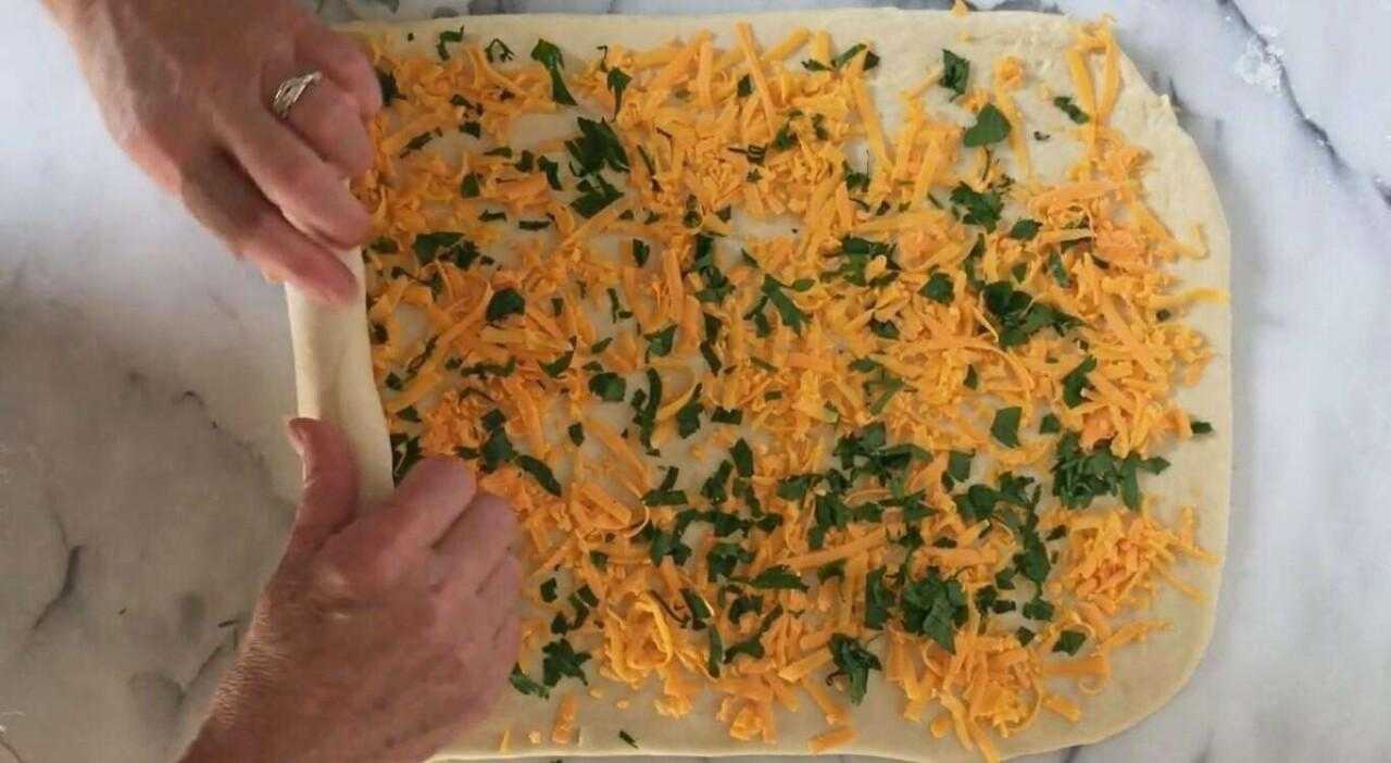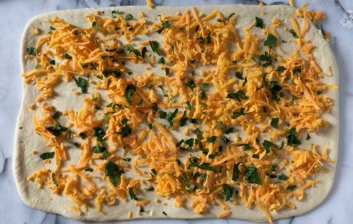 Сырный хлеб без дрожжей готовится в такой последовательности: