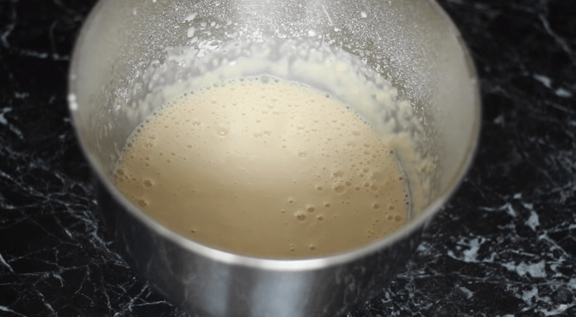 - В небольшой кастрюльке подогреть кефир, но только, чтобы он не был горячим.