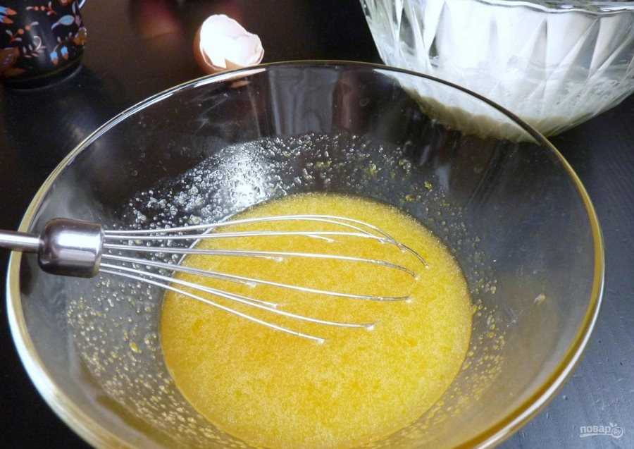Яйца взбить, ввести в дрожжи одновременно со сливочным маслом.