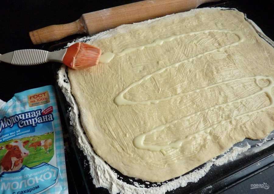Можно смазать тесто мягким сливочным маслом и посыпать сверху сахаром. Можно смазать небольшим количеством сиропа и, при желании, посыпать сахаром.