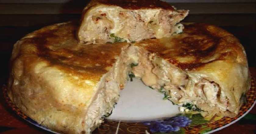 Пирог на простокваше с курицей и зеленью
