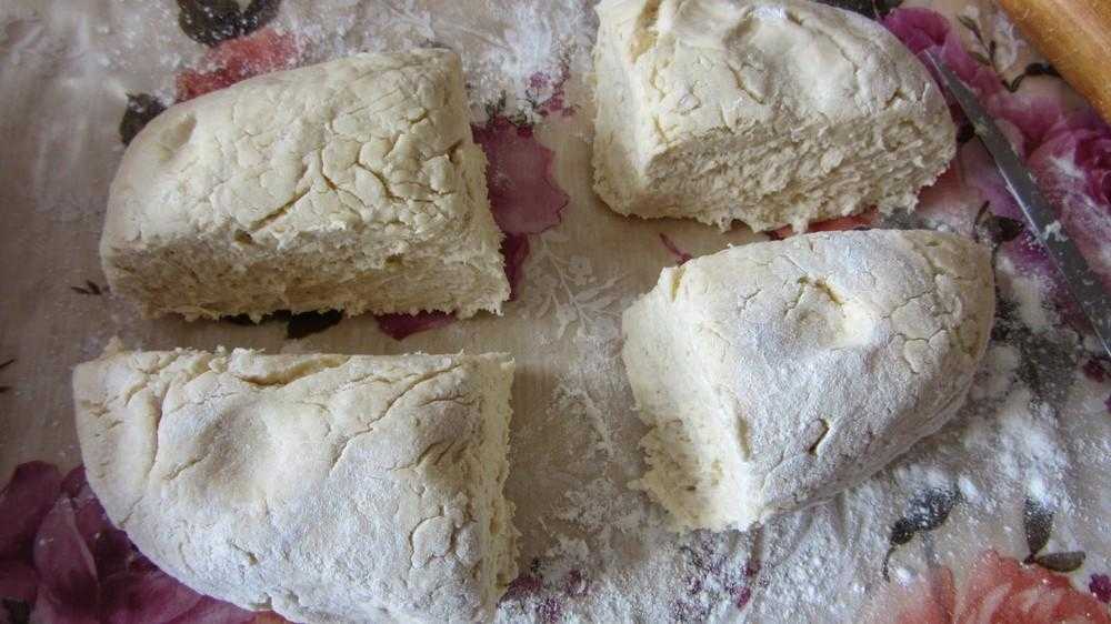 Тесто делим на ровные части и начинаем тонко раскатывать его