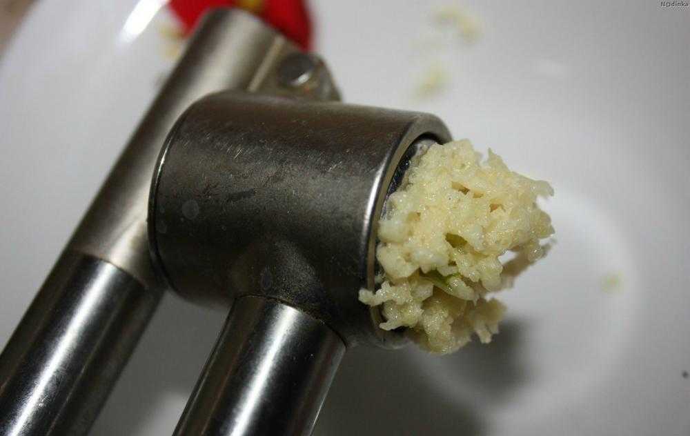 Надавливаем нужное количество чеснока и добавляем его в растопленное масло