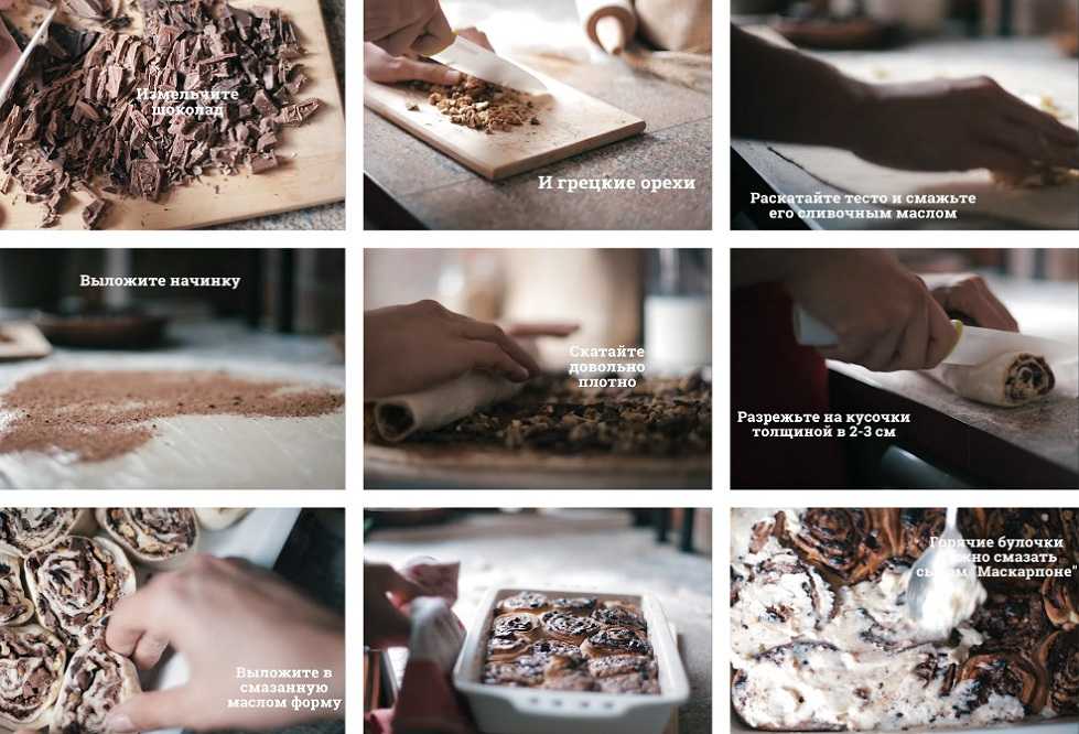 - Скатайте рулет, нарежьте синабоны и отправьте в духовку — все, как в первом рецепте.