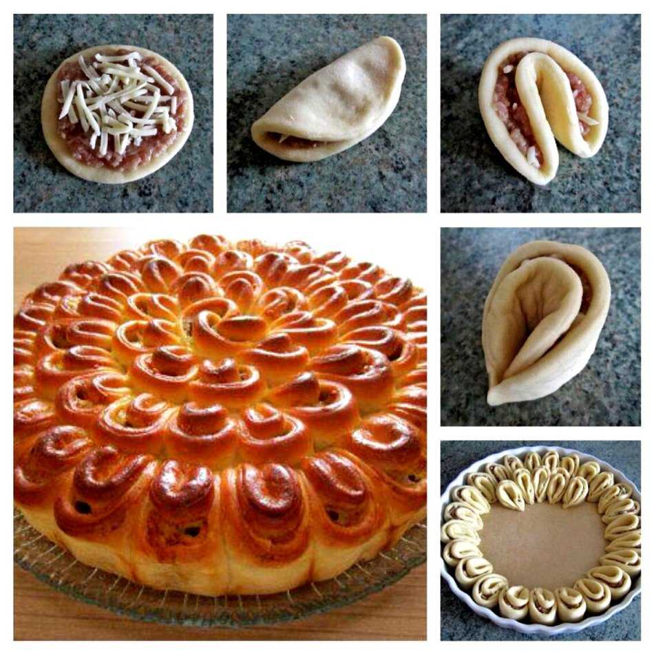 Из отдельных булочек можно вылепить красивый пирог «Хризантема»