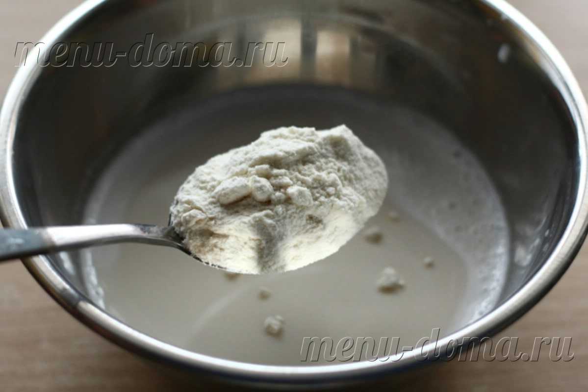 - Смешайте пшеничную муку с сухими дрожжами или из свежих сделайте раствор.