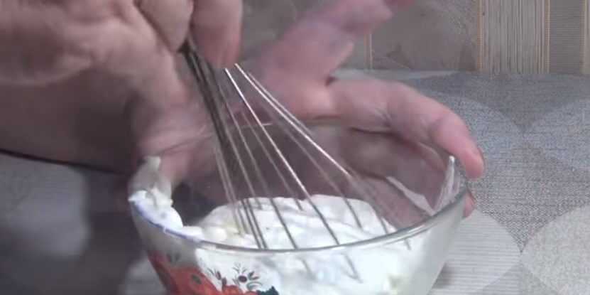 - В отдельной миске объедините масло с кефиром. Добавьте соль с сахаром и мешайте до растворения кристалликов.