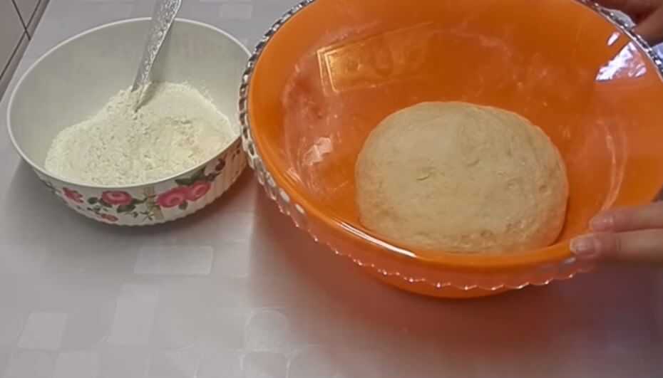 - Вымесить тесто руками, сформировать шар, накрыть салфеткой и оставить на 35-40 минут для расстойки.