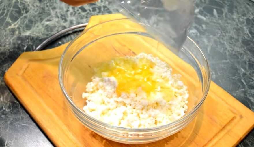 - Переложите в массу мягкий творог.