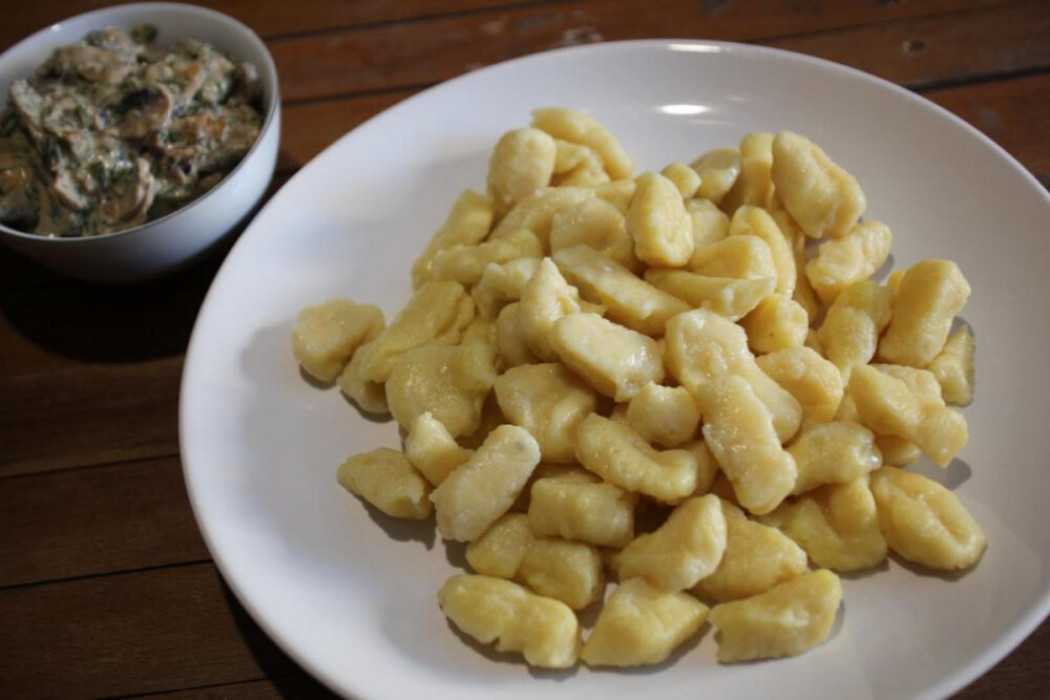 - В оставшийся грибной отвар на 10 минут погрузить готовые «копытки», выловить шумовкой, дать стечь воде.