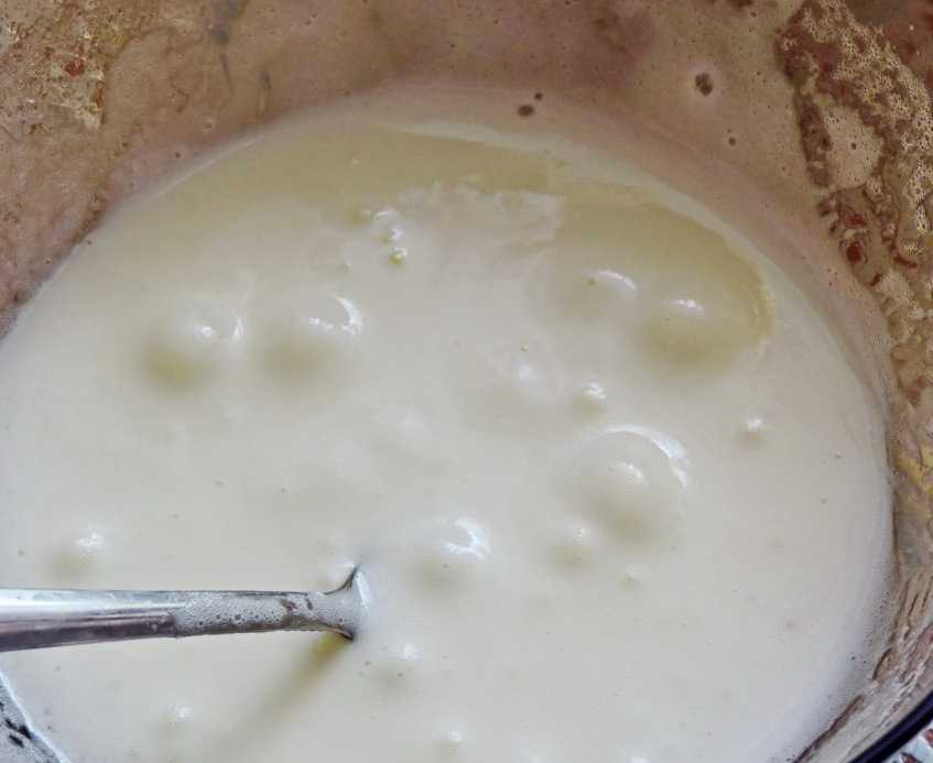 Тесто получается густоватое, что-то среднее между тестом на блины и оладьи.