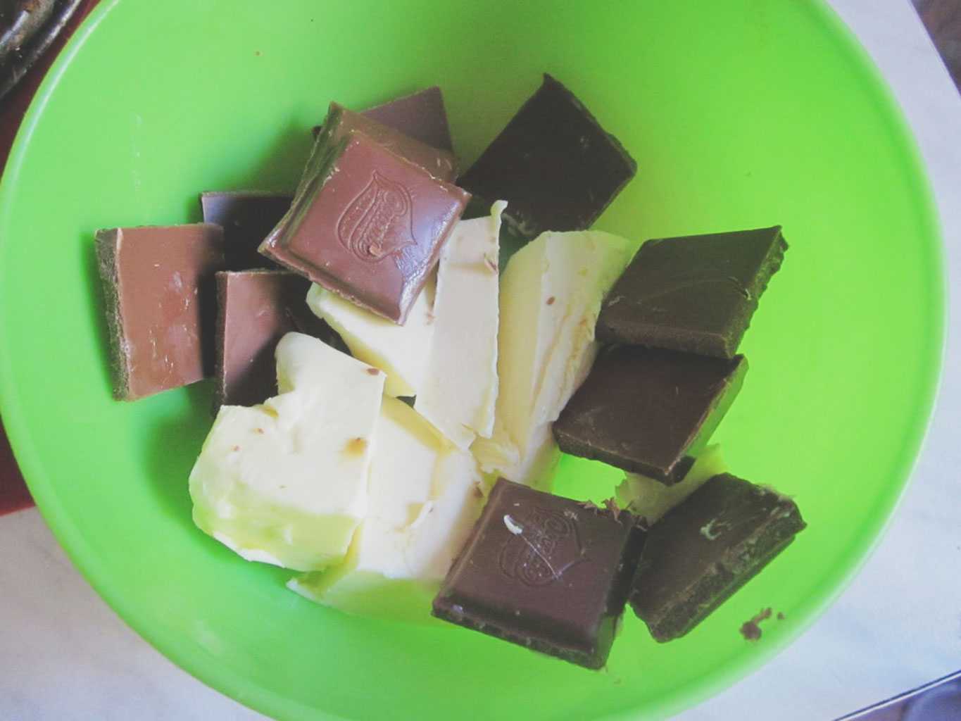 - Добавляют четверть полученной массы в шоколадно-масляную смесь. Гомогенизируют. Затем вводят оставшиеся белки и снова доводят до однородного состояния.
