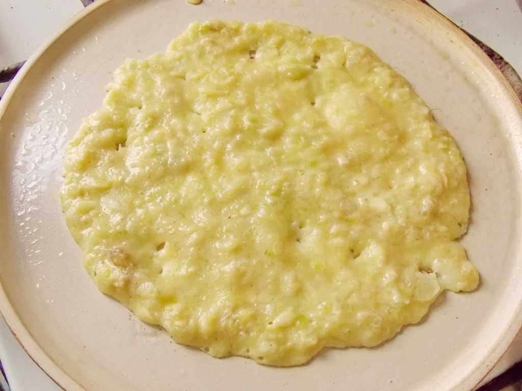 Хорошо разогрев сковороду, наливаем по центру 4 столовых ложки теста и быстро распределяем ложкой, чтобы получился толстенький блинчик размером с тарелку. Не стоит делать кабачковые блины большими, тогда их будет трудно переворачивать.