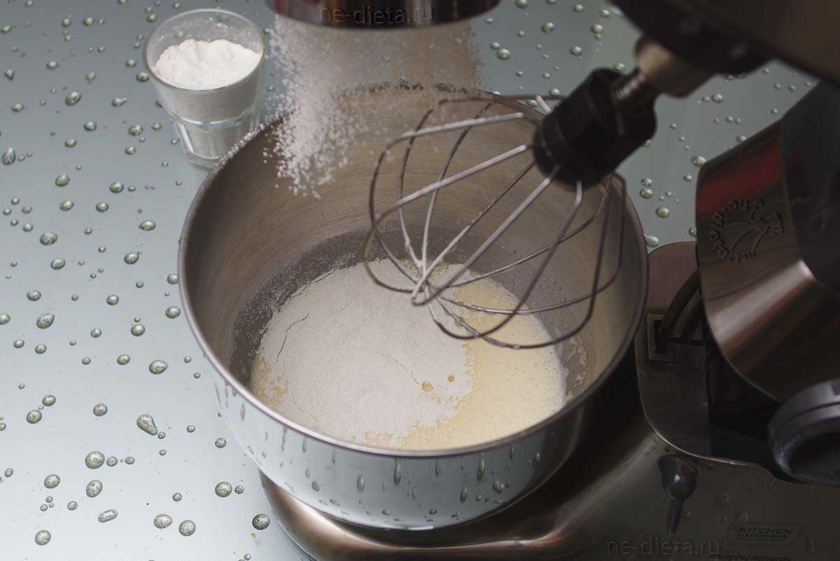 Важно! Не следует долго и тщательно вымешивать тесто после добавления муки, иначе взбитые яйца могут опасть и тесто получится слишком тяжелым и плотным.