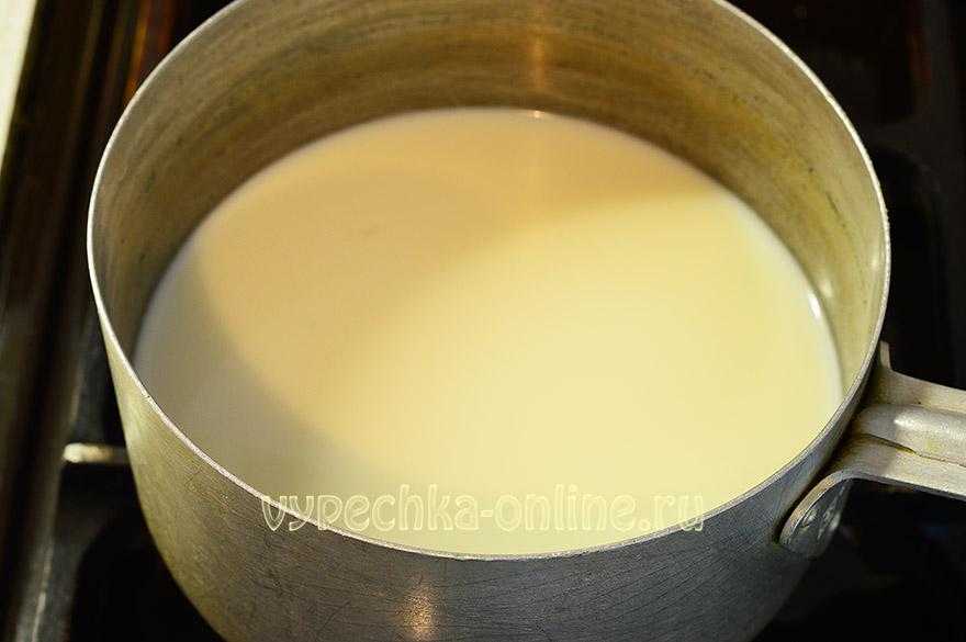Оставшееся молоко (500 мл за вычетом 4 ст.л.) поставила на газ и довела до кипения.