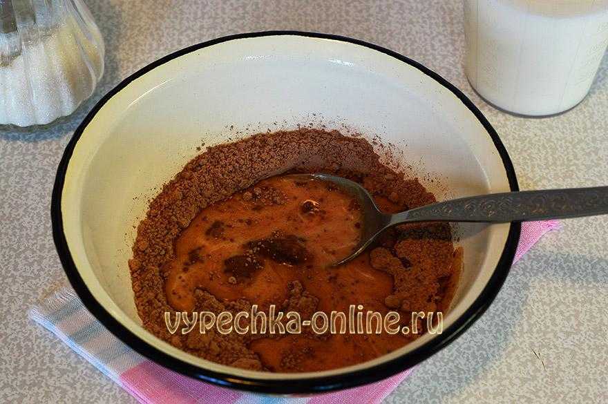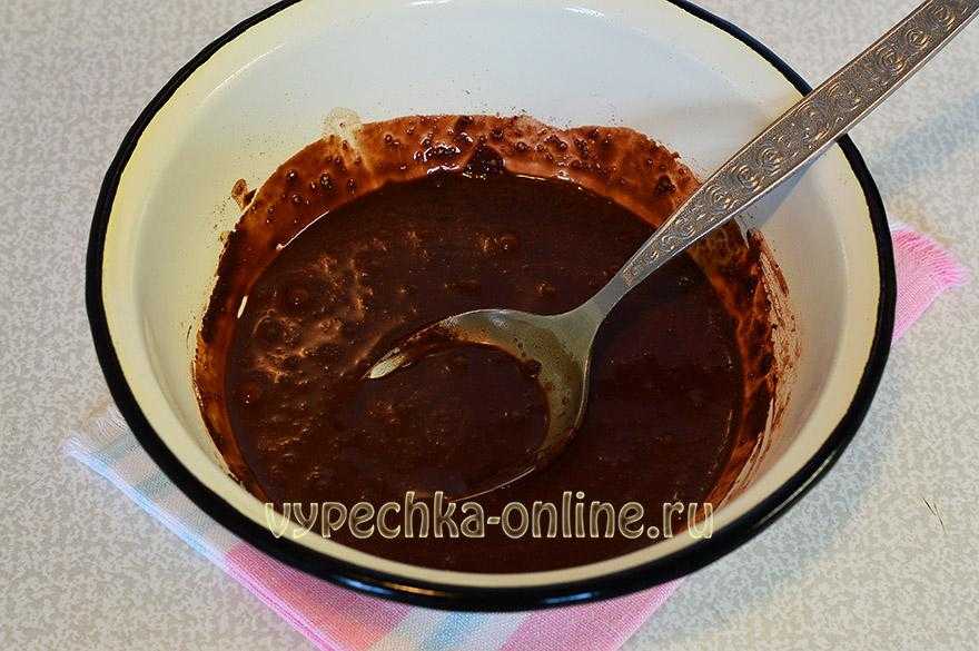 Влила в него заранее подготовленную шоколадную смесь, постоянно помешивая.