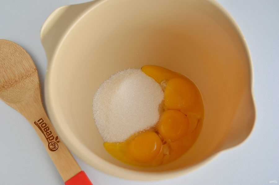 2. Отделите желтки от белков. Взбейте миксером желтки с сахаром до образования светлой пышной массы.