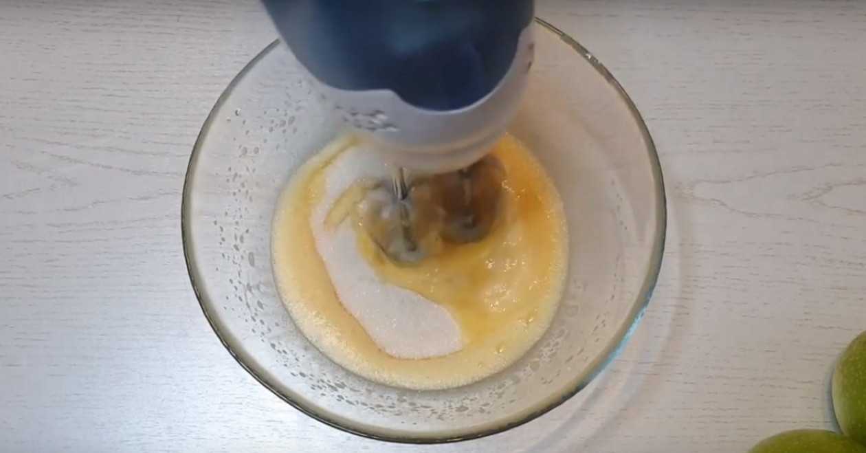 - Масло смешать добела с сахаром. Добавить яйцо.