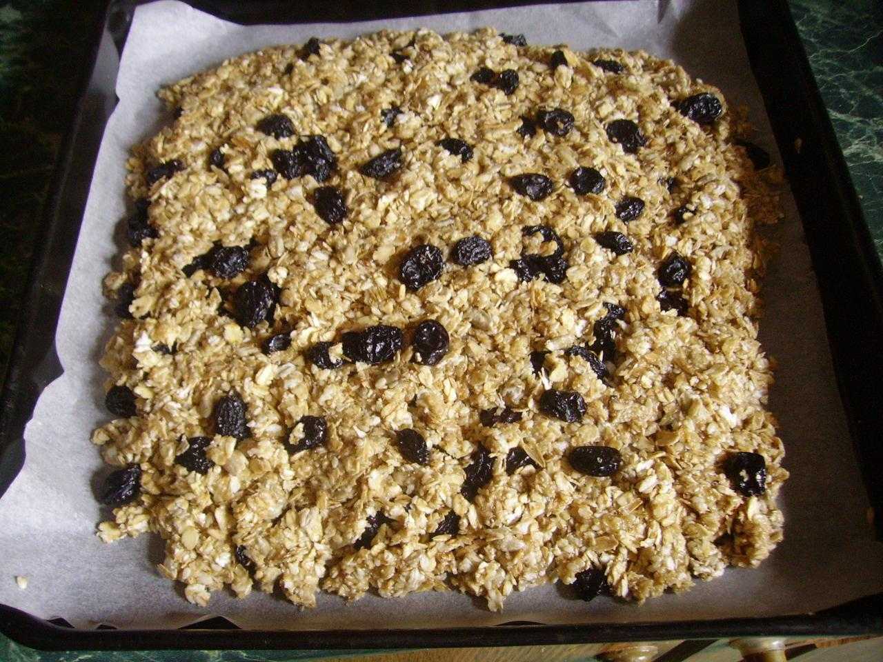 Просто смешайте все ингредиенты. У вас получится липкая овсяная масса. Выкладываем ее на пергамент (высота не более 1,5 см) и отправляем в духовку, разогретую до 180 градусов. Выпекать диетические батончики мюсли следует 30 минут. Когда диетические мюсли остынут, их надо будет разрезать на кусочки.