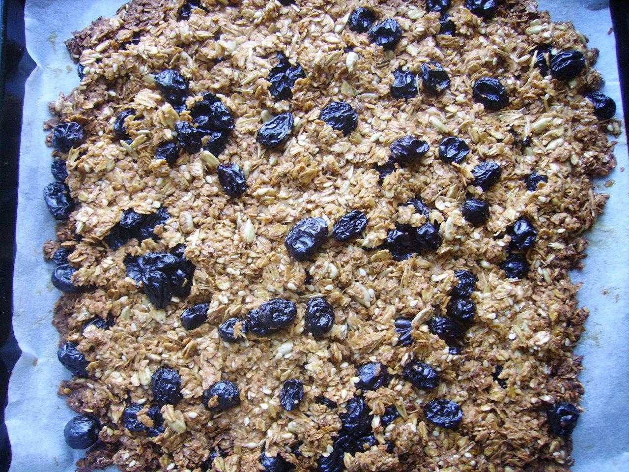 В мюсли можно добавить при желании измельченные сухофрукты, я добавила пару горстей промытого изюма.