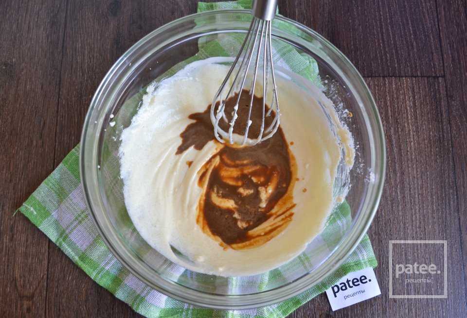Влейте растворенное кофе с молоком в тесто и перемешайте.