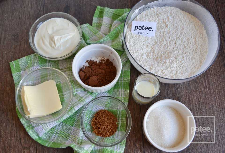 Для приготовления этого необычного печенья нам понадобиться: масло сливочное, сахар, сметана, молоко, кофе, мука, какао.
